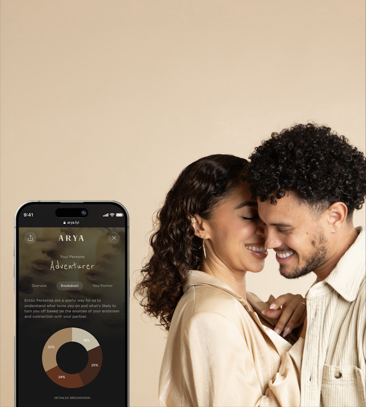 At Arya, we recognize the profound role intimacy holds within a couple's shared journey. Our aim is to gently pave the way for more effortless conversations surrounding it.